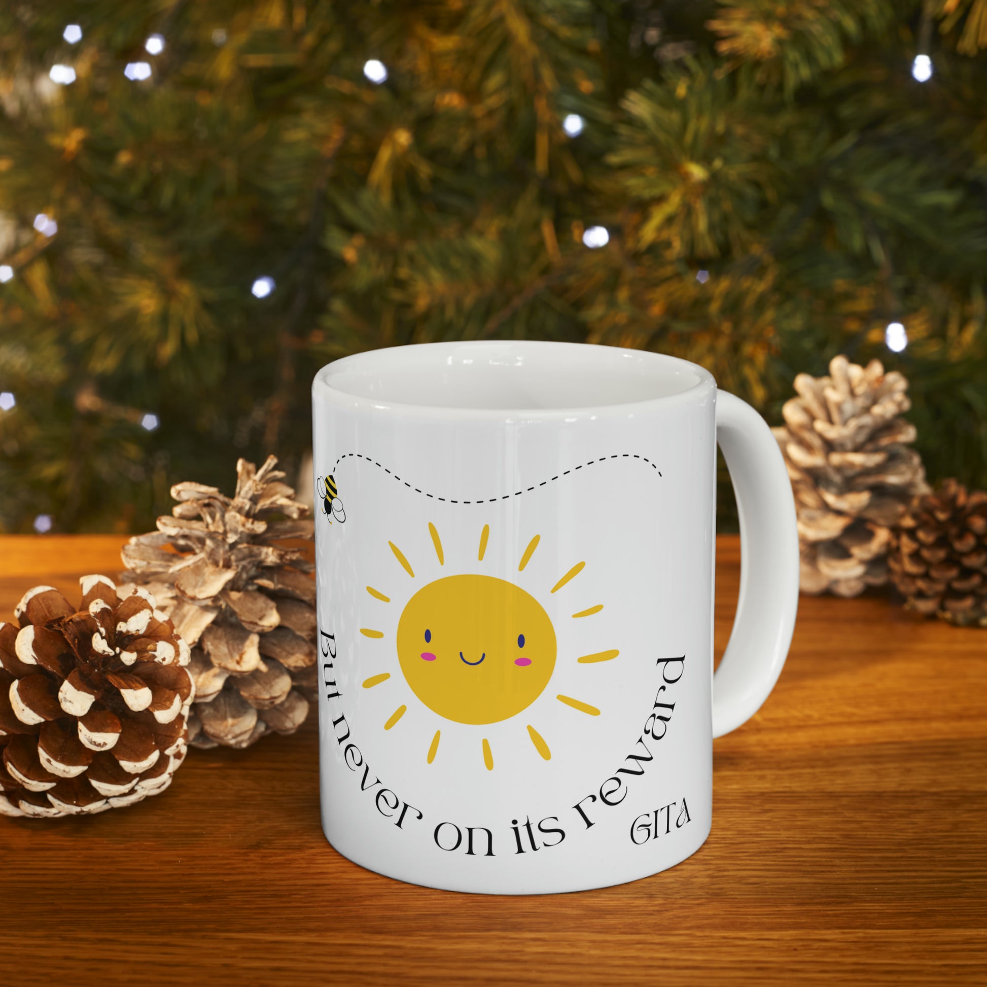 - The exquisite 11-ounce Bhagavad Gita-inspired coffee mug is a harmonious blend of spirituality and daily ritual.