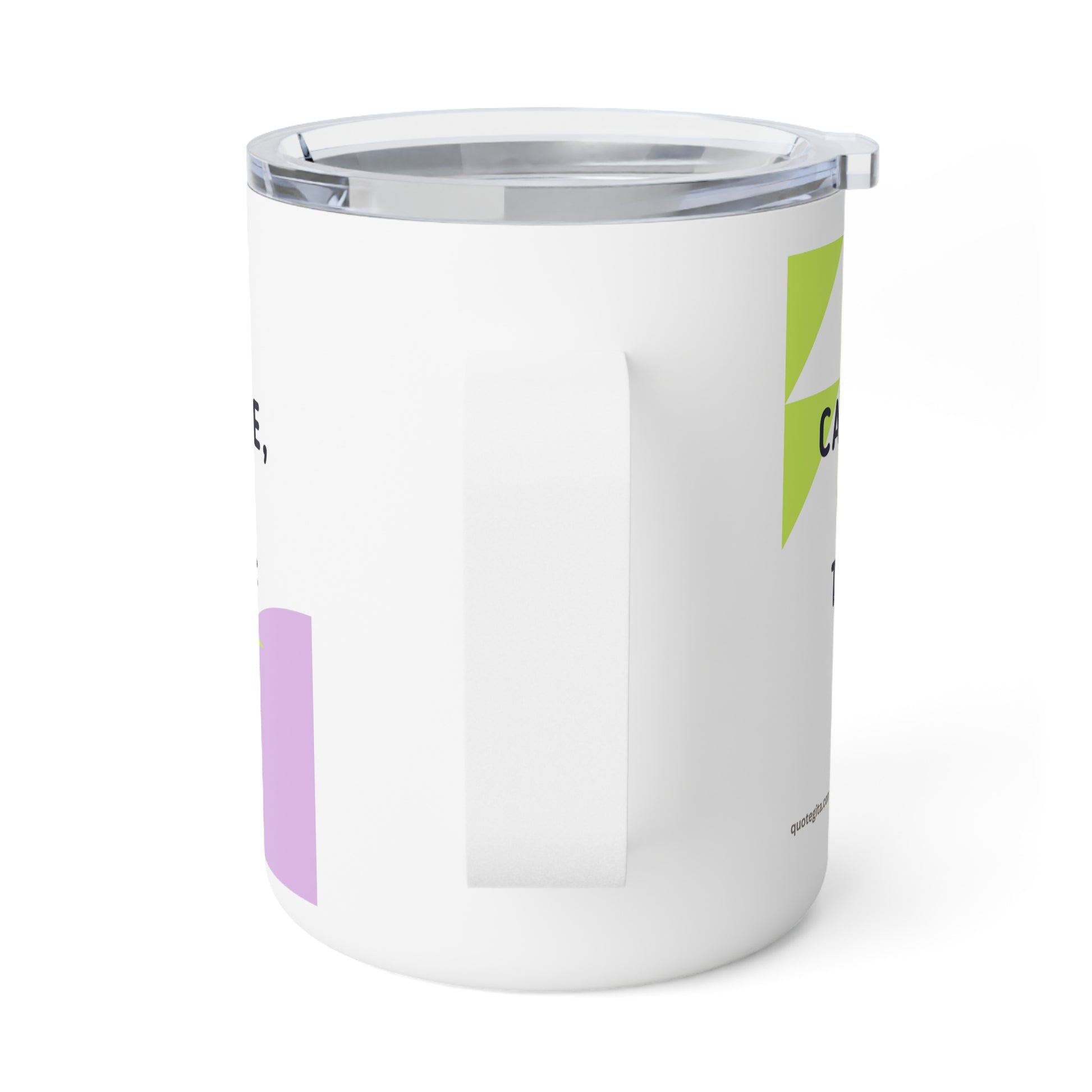 - This insulated travel mug holds 10 ounces with robust stainless steel, double wall construction, and a clear acrylic lid