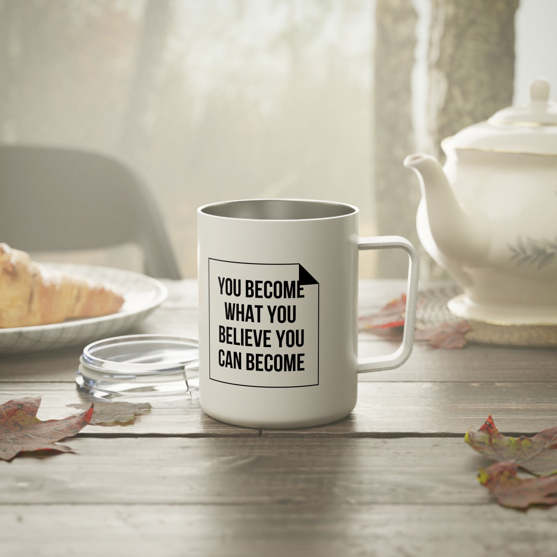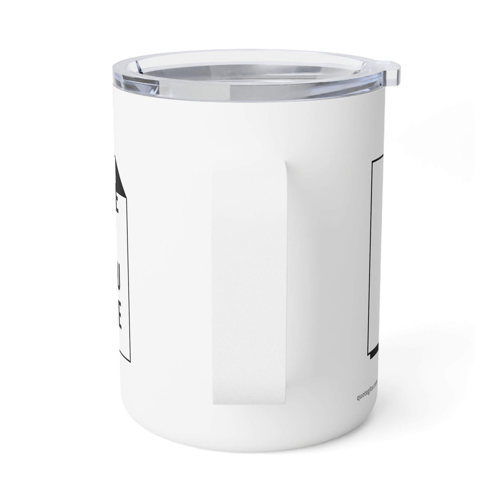 - This insulated travel mug holds 10 ounces with robust stainless steel, double wall construction, and a clear acrylic lid