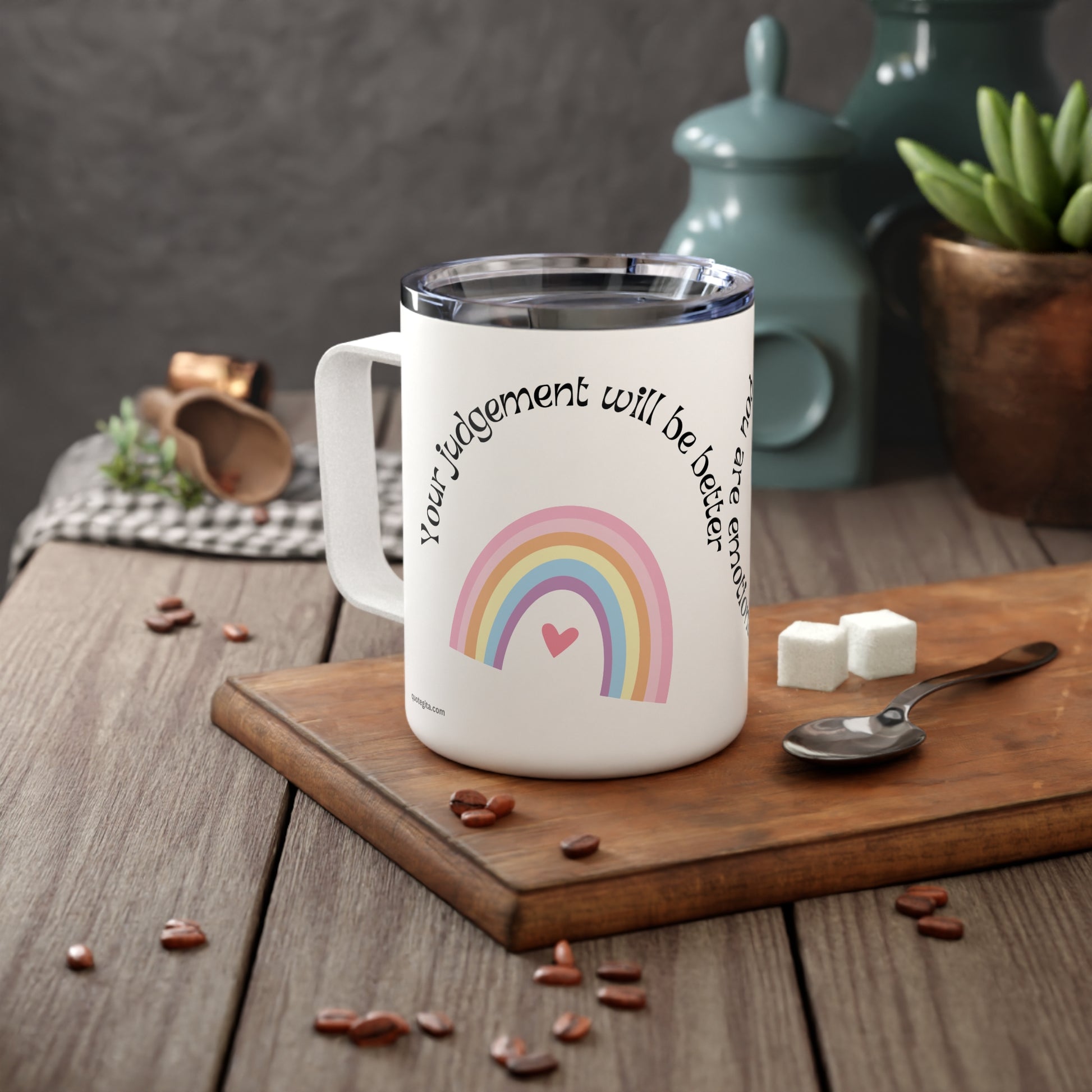 - This insulated travel mug holds 10 ounces with robust stainless steel, double wall construction, and a clear acrylic lid