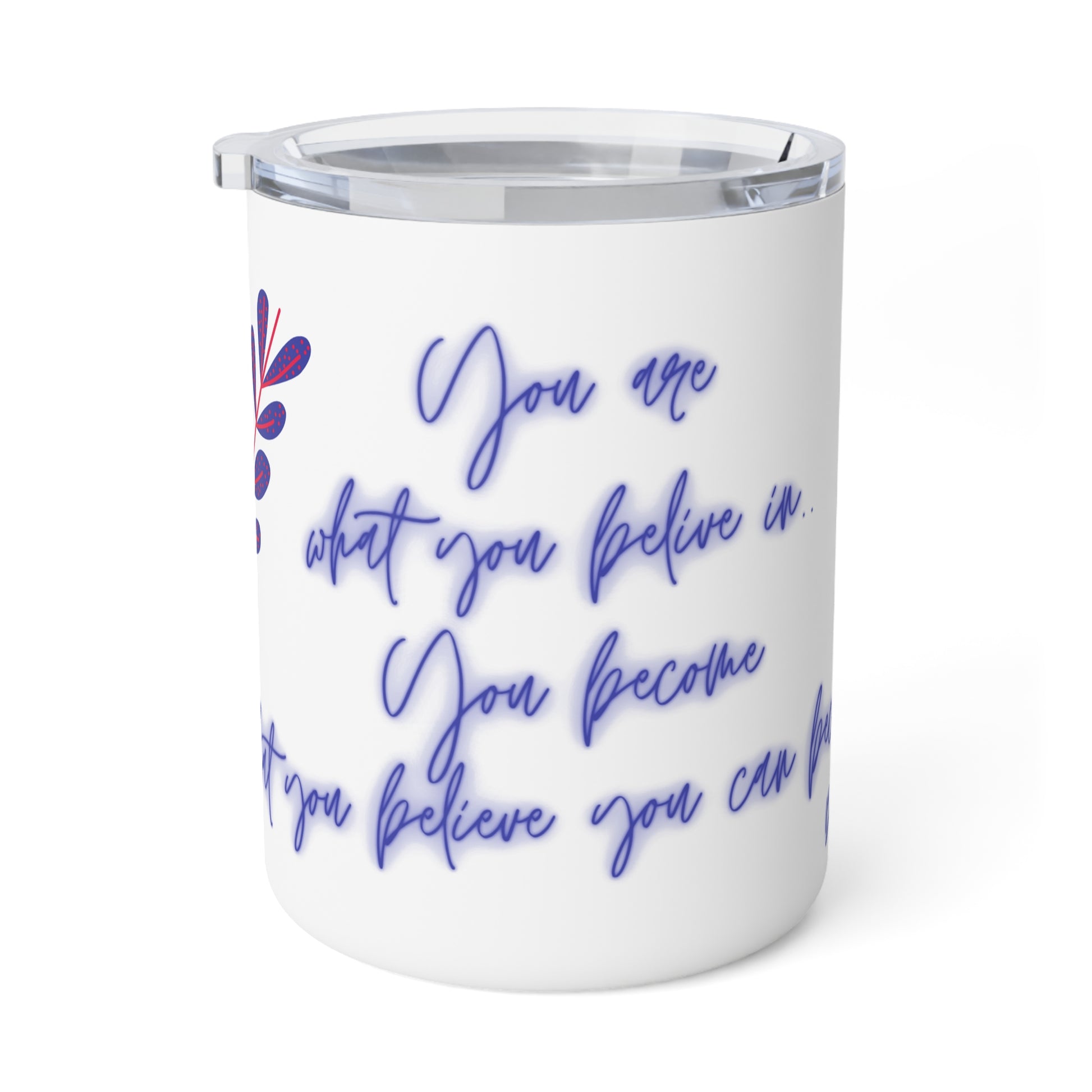 - This insulated travel mug holds 10 ounces with robust stainless steel, double wall construction, and a clear acrylic lid