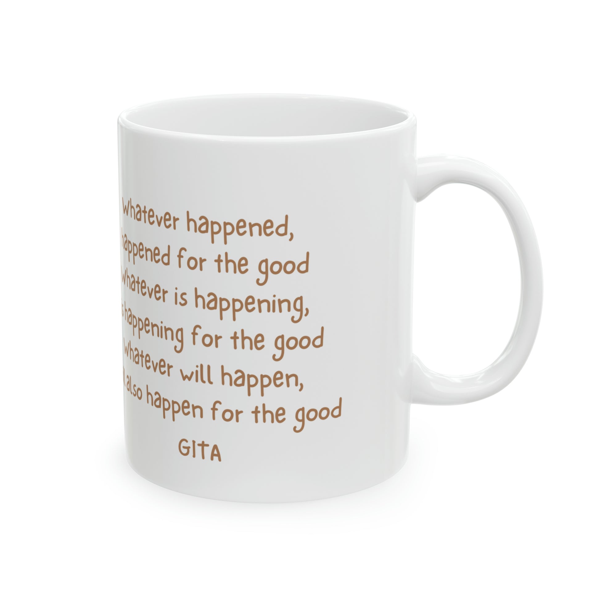 - The exquisite 11-ounce Bhagavad Gita-inspired coffee mug is a harmonious blend of spirituality and daily ritual.