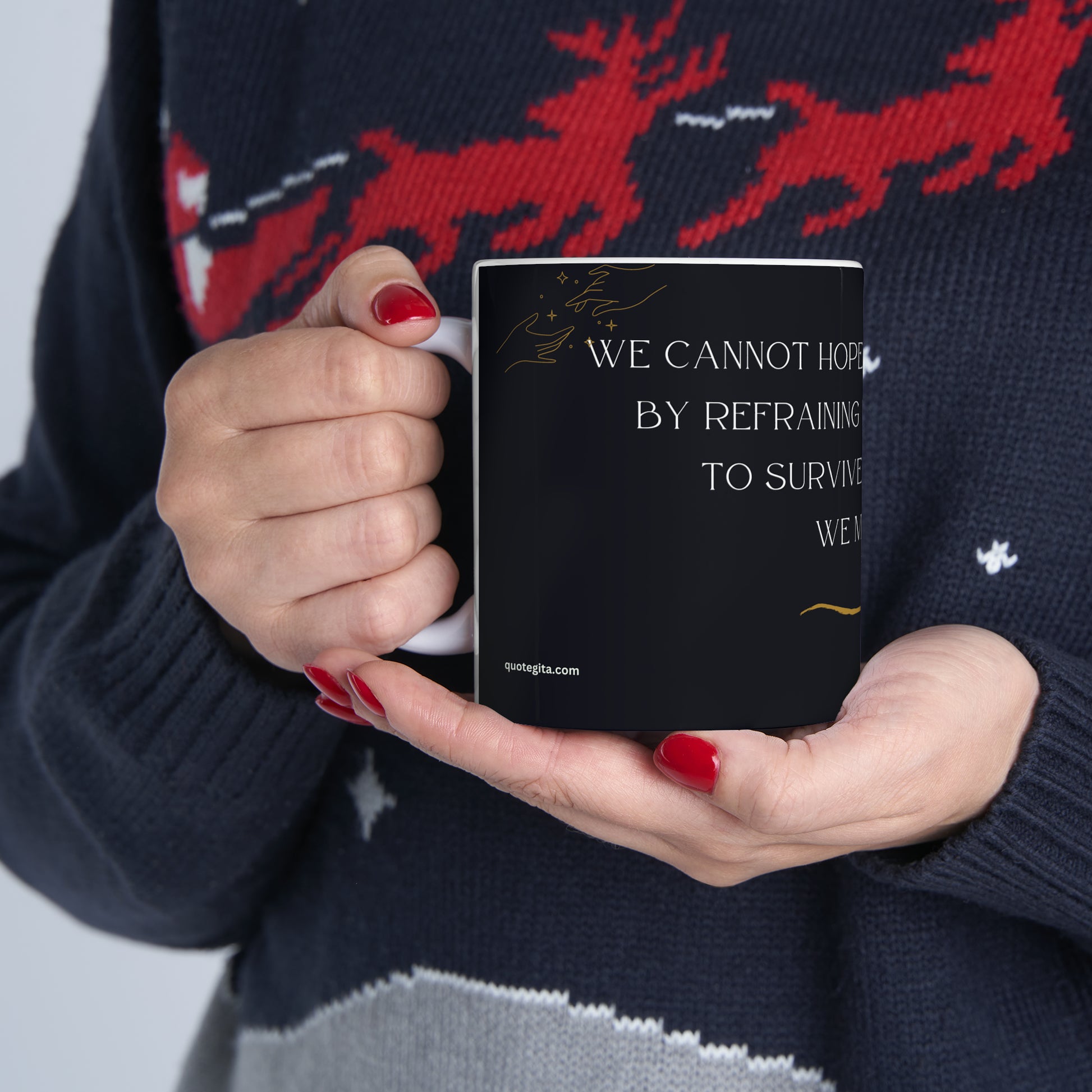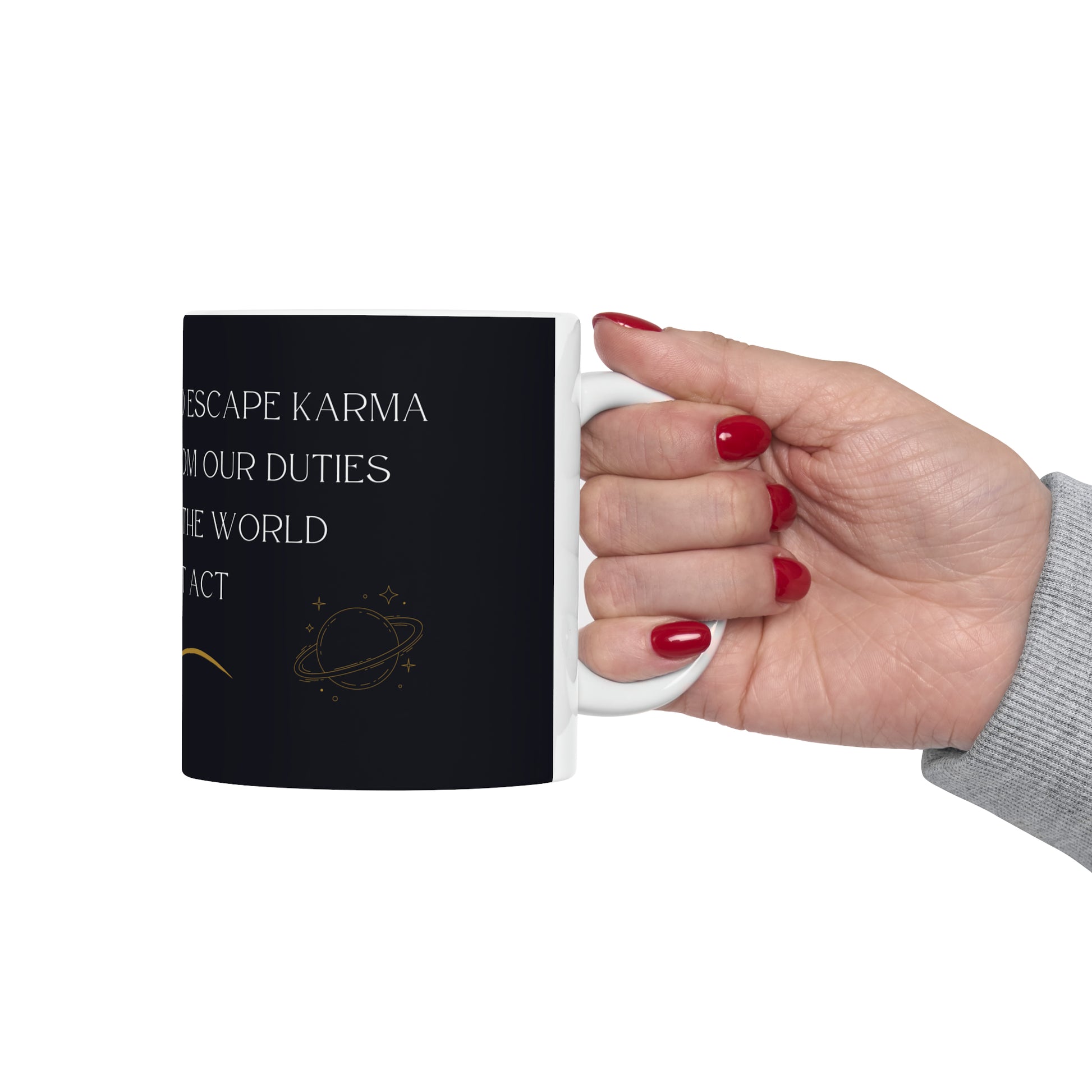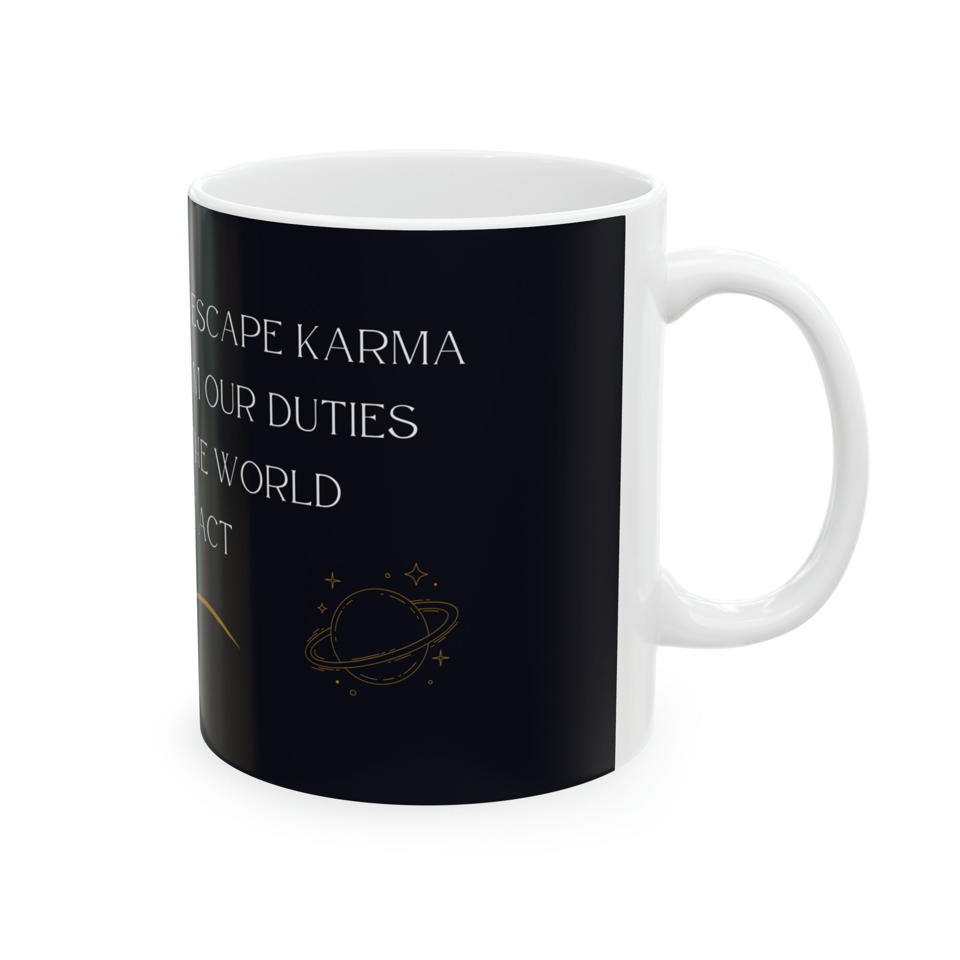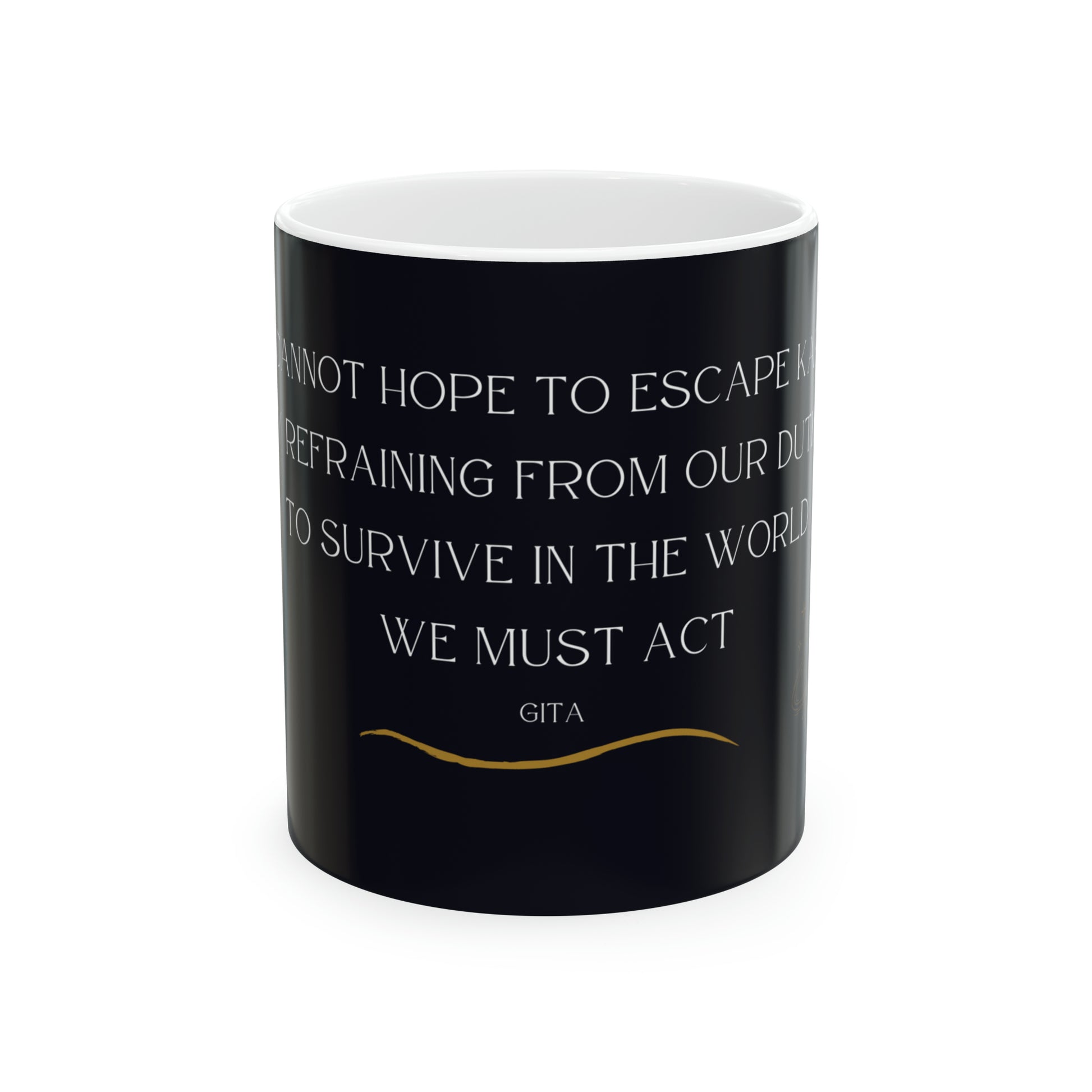 - The exquisite 11-ounce Bhagavad Gita-inspired coffee mug is a harmonious blend of spirituality and daily ritual.