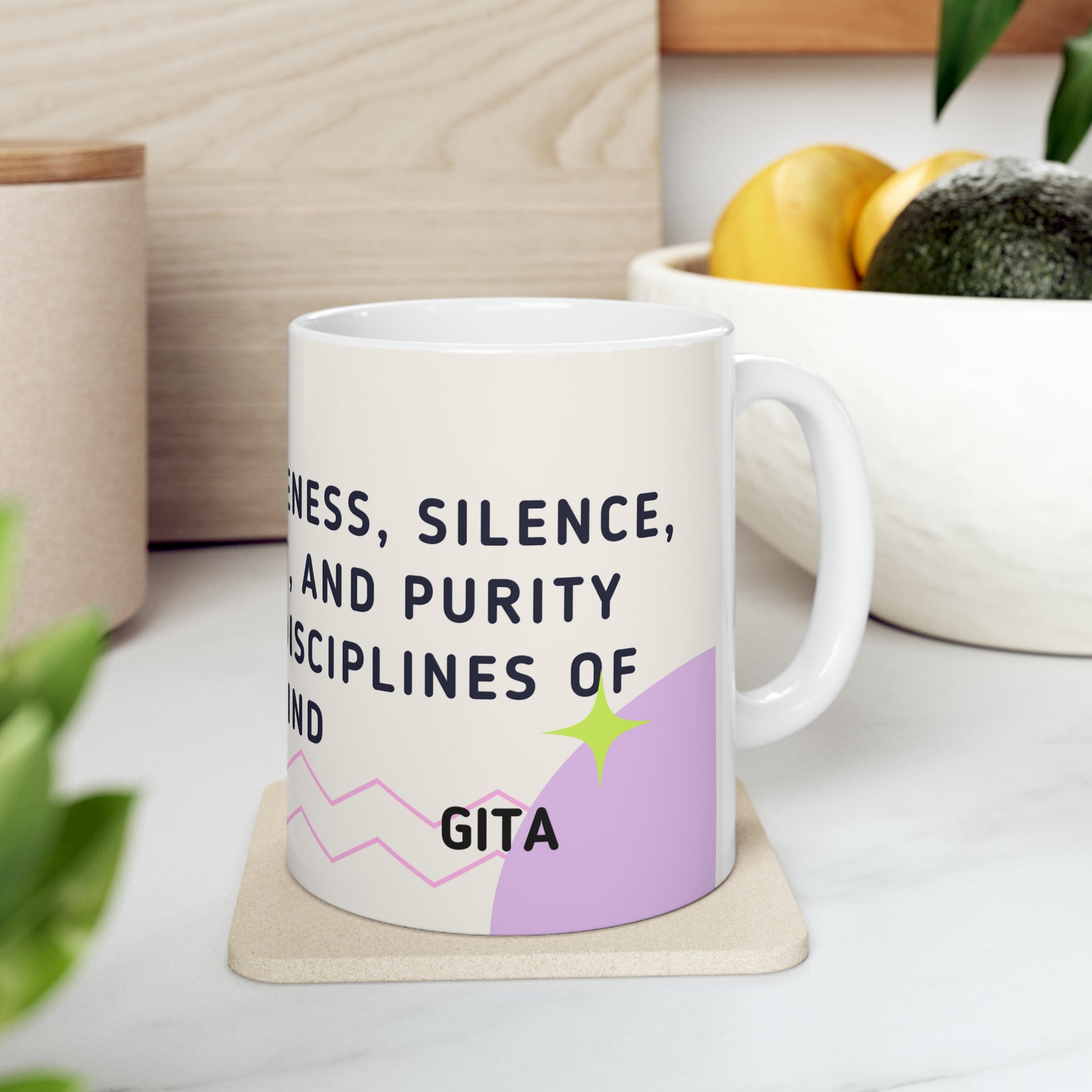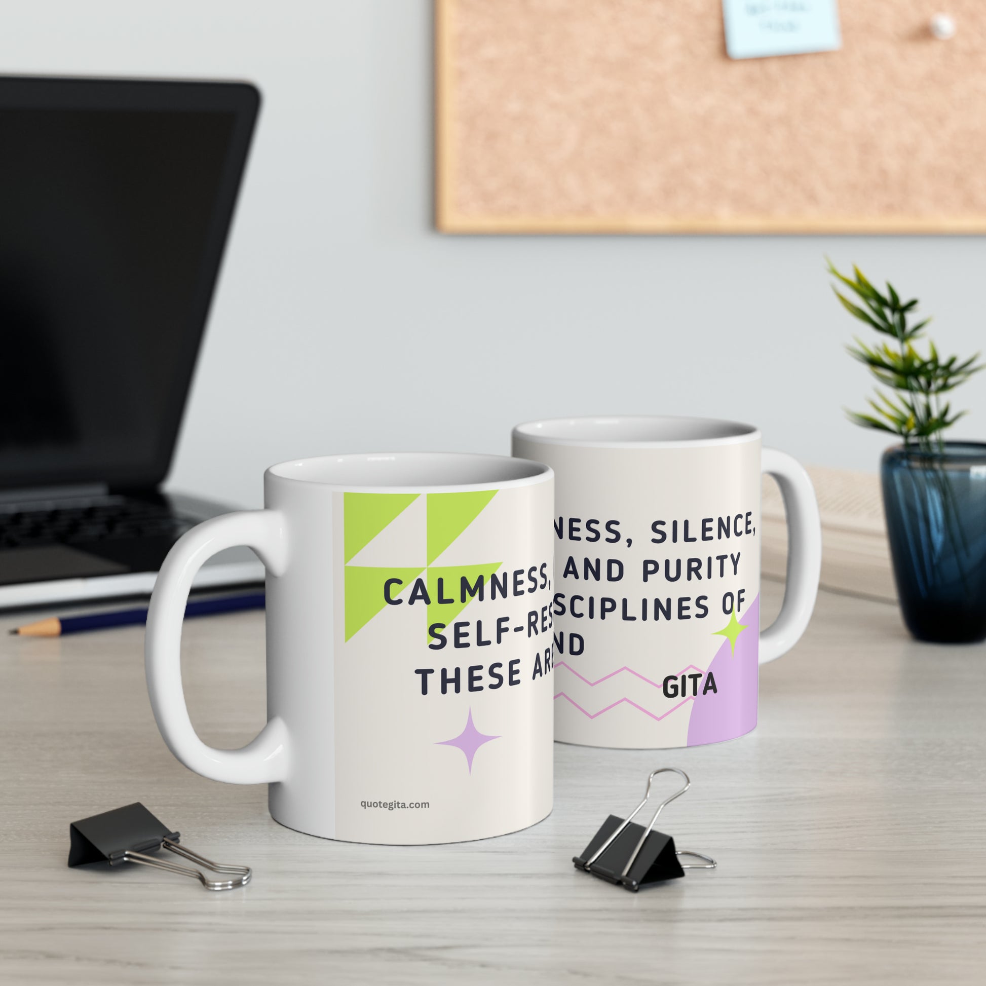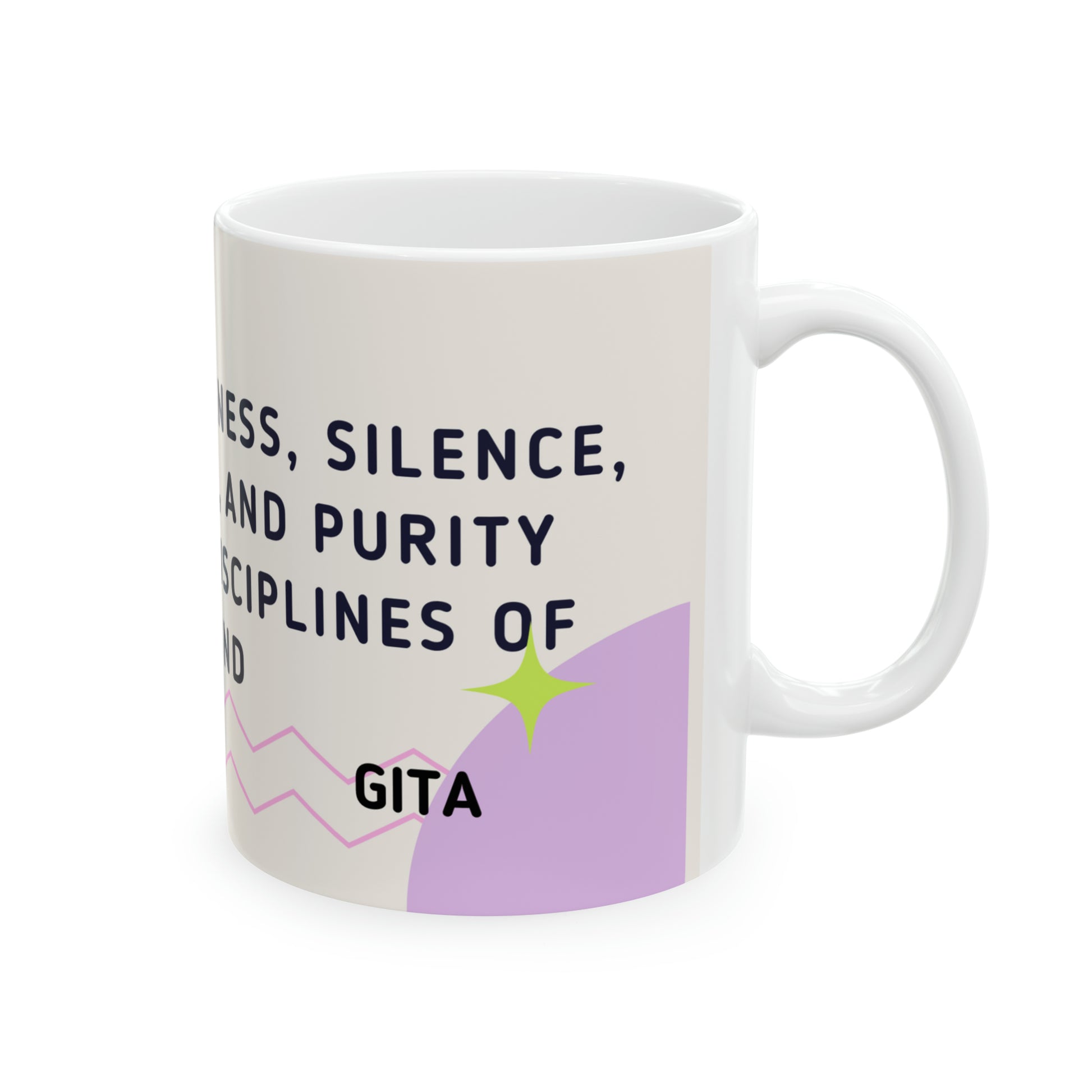 - The exquisite 11-ounce Bhagavad Gita-inspired coffee mug is a harmonious blend of spirituality and daily ritual.