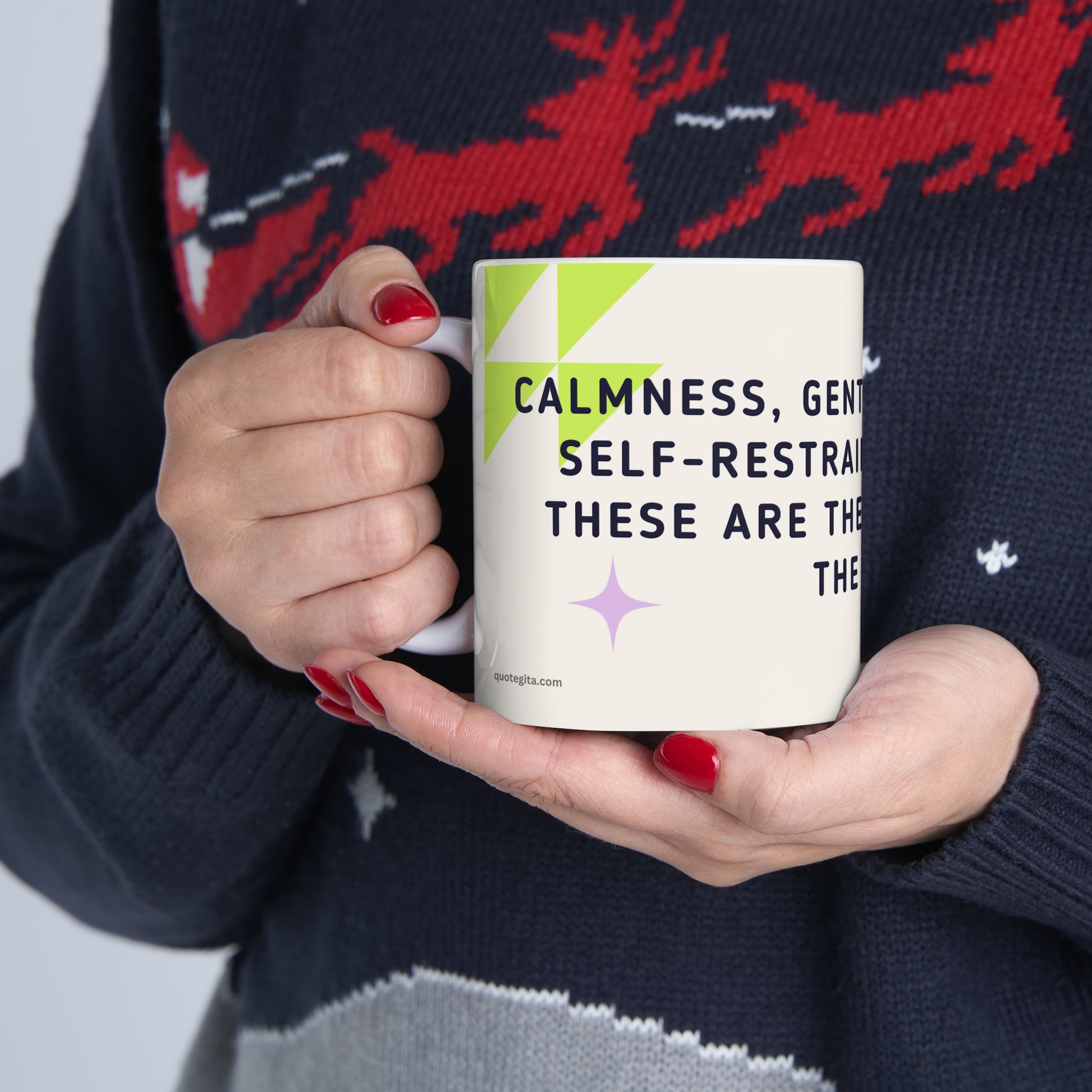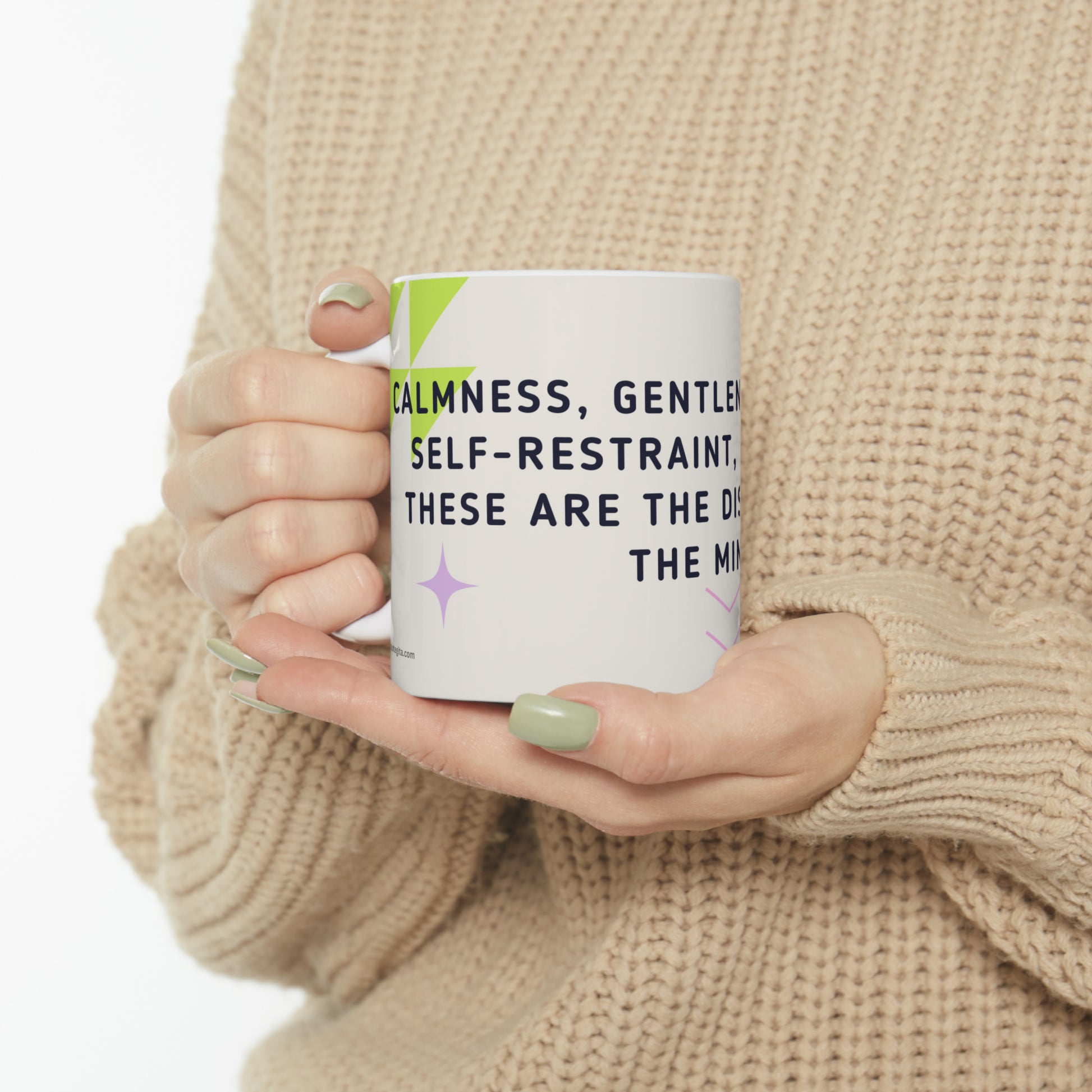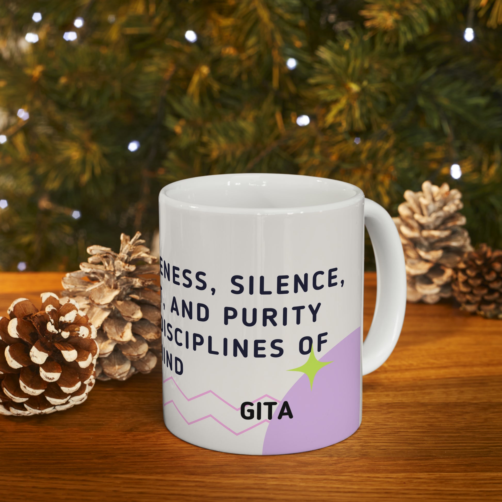 - The exquisite 11-ounce Bhagavad Gita-inspired coffee mug is a harmonious blend of spirituality and daily ritual.